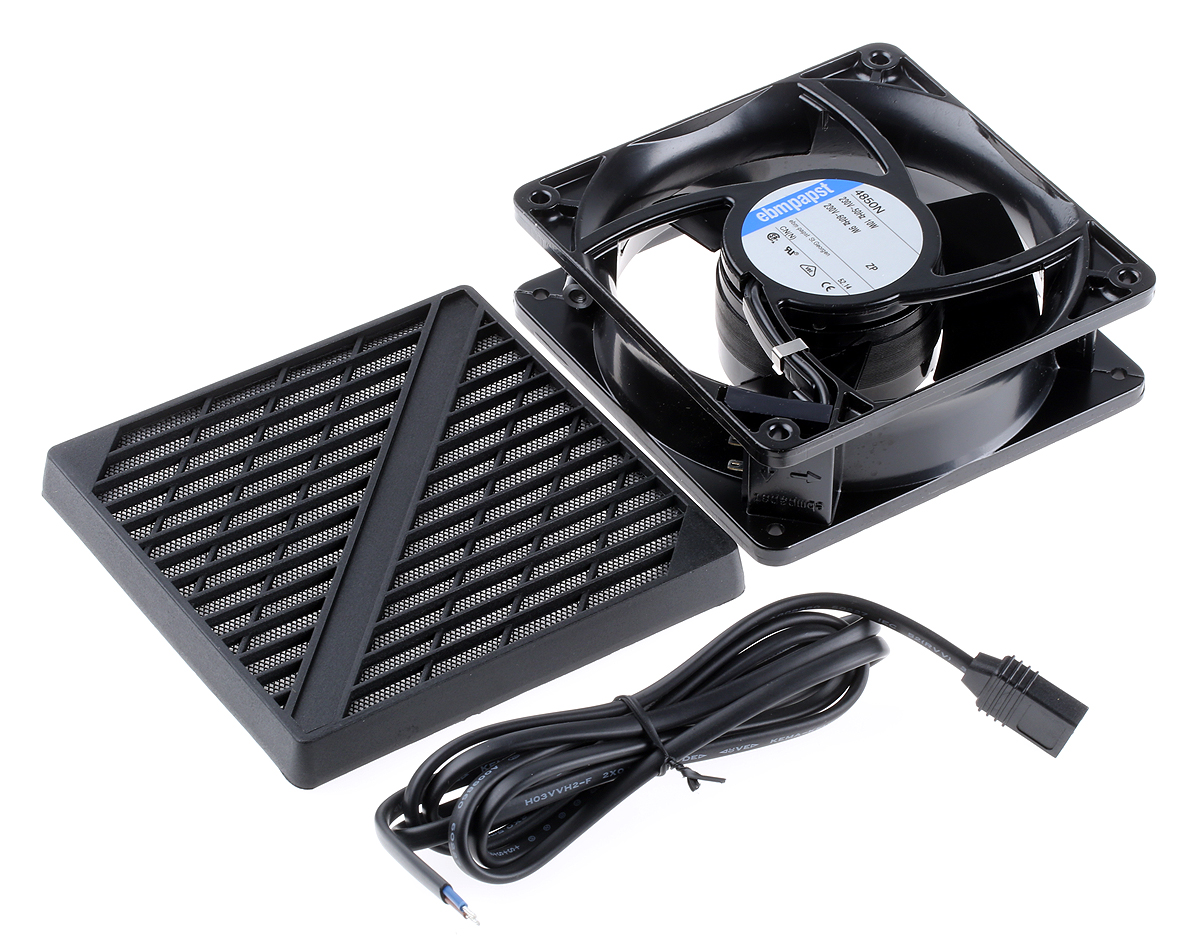This is Fan Kit AC 100m³/h 1800rpm 4850N Axial Fan LZ120/1.5 Fan Lead PMFA120T Fan Filter 10W 230 V ac manufactured by ebm-papst. The manufacturer part number is 4850N-KR1. The given dimensions of the product include 119 x 119 x 38mm. This has integrated with a sleeve, a bearing with long-lasting features. In addition, the height is 119mm. Furthermore, the product is 119mm wide. The product comes in 38mm depth. It has a 100m³/h air flow rate.