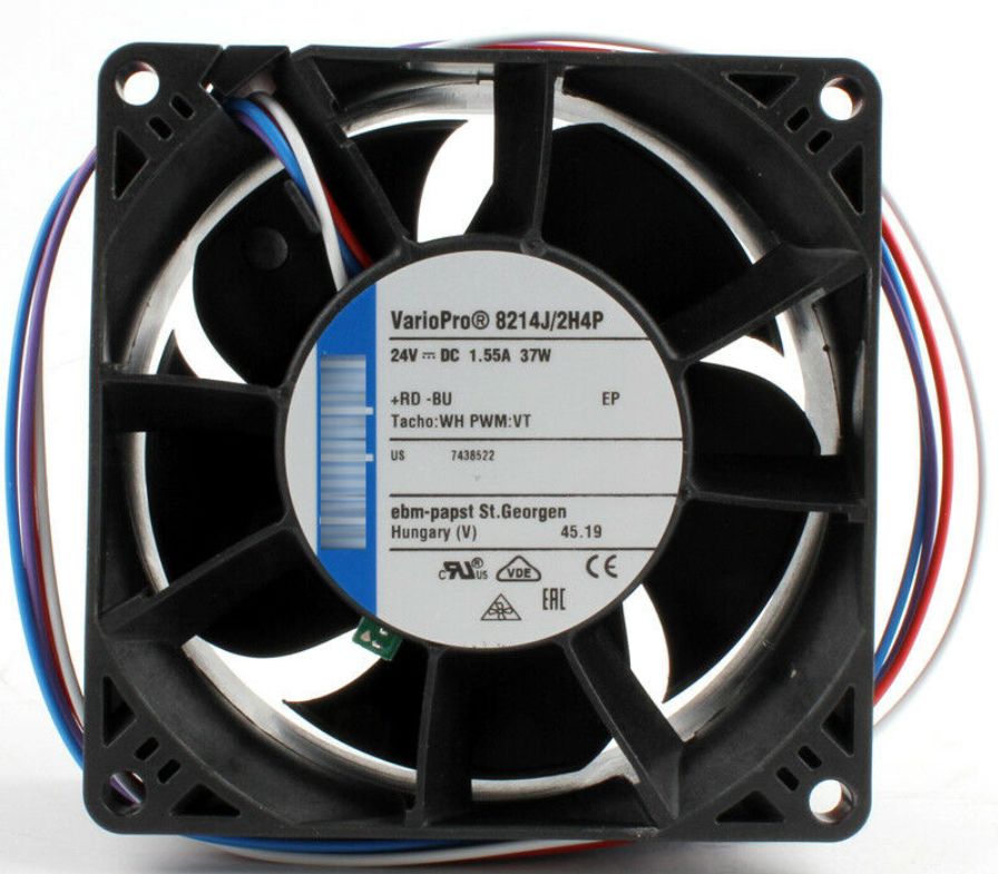 This is Axial Fan 80 x 80 x 38mm 222.7m³/h 38W 24 V dc (8200J Series) manufactured by ebm-papst. The manufacturer part number is 8214J/2H4P. The given dimensions of the product include 80 x 80 x 38mm. This has integrated with a ball, a bearing with long-lasting features. In addition, the height is 80mm. Furthermore, the product is 80mm wide. The product comes in 38mm depth. It has a 222.7m³/h air flow rate. These sensors are sort of pwm, tachometer.