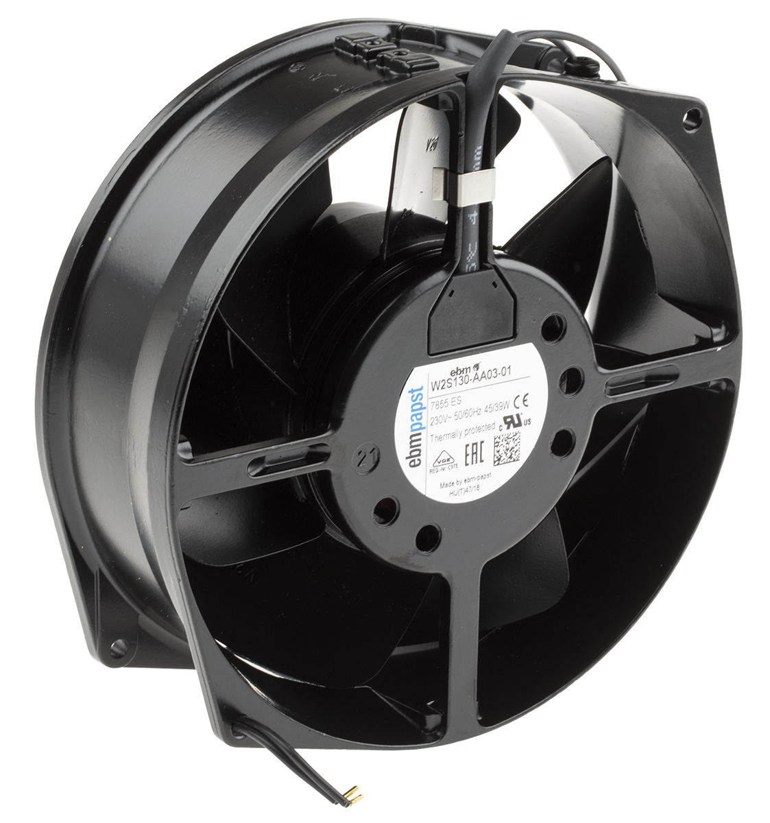 This is Axial Fan 150 x 55mm 390m³/h 39W 230 V ac (W2S130 Series) manufactured by ebm-papst. The manufacturer part number is W2S130-AA03-01. The given dimensions of the product include 150 x 55mm. This has integrated with a ball, a bearing with long-lasting features. Furthermore, the product is 55mm wide. It has a 340m³/h air flow rate.