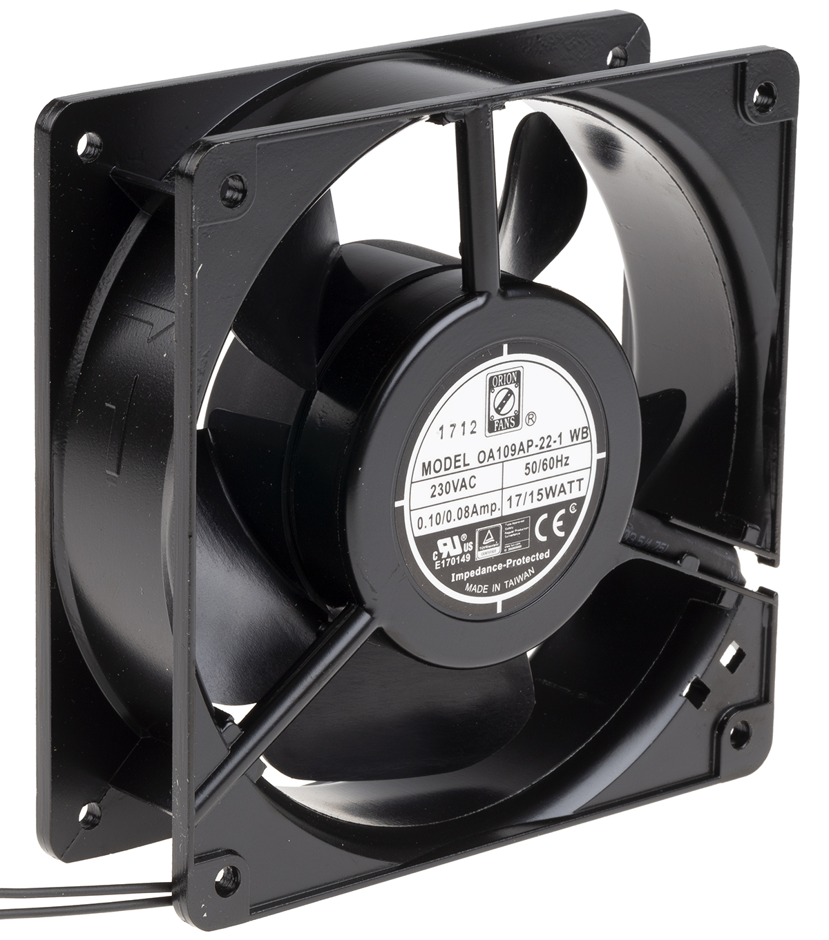 This is Axial Fan 119.5 x 119.5 x 38.5mm 187m³/h 15W 230 V ac manufactured by RS Pro. The manufacturer part number is 789-7902. The given dimensions of the product include 120 x 120 x 38mm. This has integrated with a ball, a bearing with long-lasting features. In addition, the height is 119.5mm. Furthermore, the product is 119.5mm wide. The product comes in 38.5mm depth. It has a 186.9m³/h air flow rate.