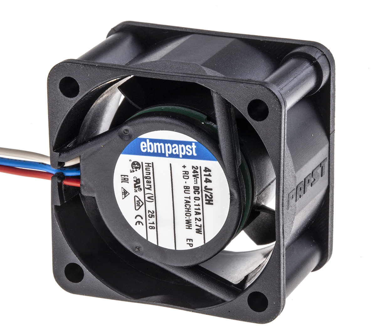 This is 400J Series Axial Fan 40 x 40 x 25mm 22m³/h 3W 24 V dc manufactured by ebm-papst. The manufacturer part number is 414J/2H. The given dimensions of the product include 40 x 40 x 25mm. This has integrated with a ball, a bearing with long-lasting features. In addition, the height is 40mm. Furthermore, the product is 40mm wide. The product comes in 25mm depth. It has a 22m³/h air flow rate. These sensors are sort of tachometer.