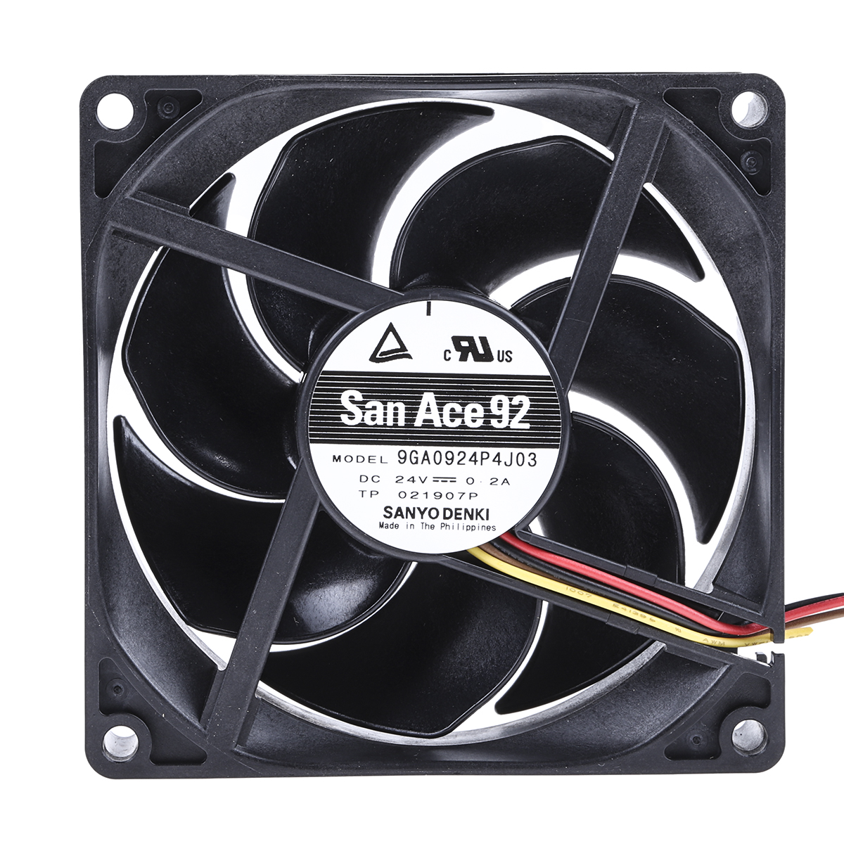 This is Axial Fan 92 x 92 x 25mm 132m³/h 4.8W 24 V dc (San Ace 9GA Series) manufactured by Sanyo Denki. The manufacturer part number is 9GA0924P4J03. The given dimensions of the product include 92 x 92 x 25mm. This has integrated with a ball, a bearing with long-lasting features. In addition, the height is 92mm. Furthermore, the product is 92mm wide. The product comes in 25mm depth. It has a 132m³/h air flow rate. These sensors are sort of pwm, tachometer.