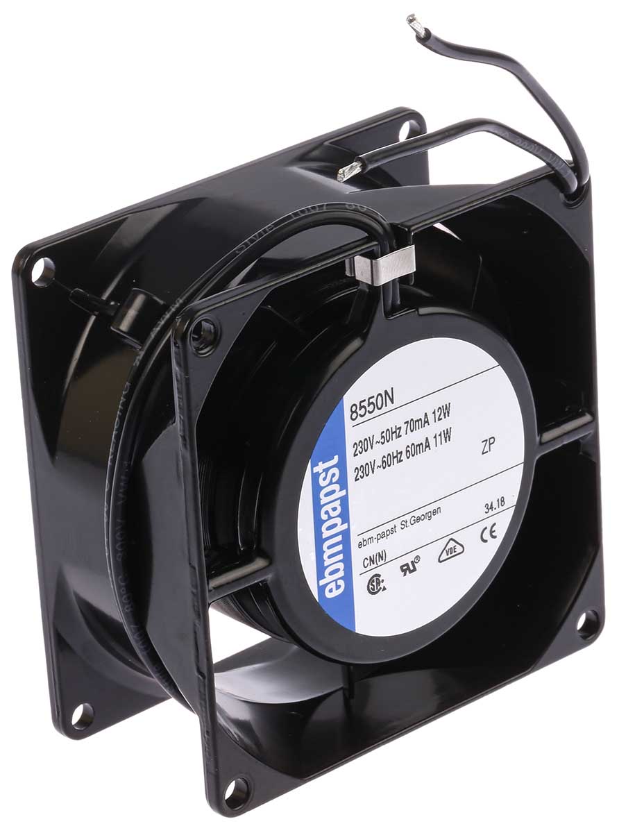 This is Axial Fan 80 x 80 x 38mm 50m³/h 12W 230 V ac (8000N Series) manufactured by ebm-papst. The manufacturer part number is 8550N. The given dimensions of the product include 80 x 80 x 38mm. This has integrated with a sleeve, a bearing with long-lasting features. In addition, the height is 80mm. Furthermore, the product is 80mm wide. The product comes in 38mm depth. It has a 50m³/h air flow rate.