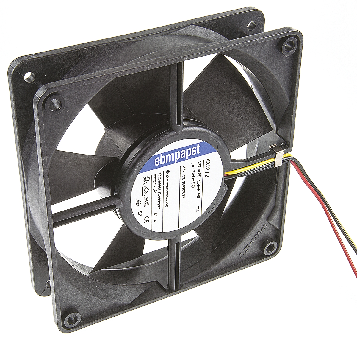 This is Axial Fan 119 x 119 x 32mm 170m³/h 5W 12 V dc (4300 Series) manufactured by ebm-papst. The manufacturer part number is 4312/2. The given dimensions of the product include 119 x 119 x 32mm. This has integrated with a ball, a bearing with long-lasting features. In addition, the height is 119mm. Furthermore, the product is 119mm wide. The product comes in 32mm depth. It has a 170m³/h air flow rate. These sensors are sort of tachometer.