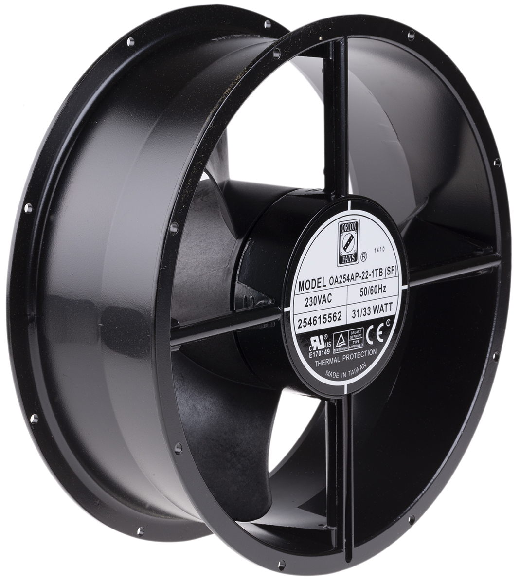 This is Axial Fan 550cpm 33W 230V ac manufactured by RS Pro. The manufacturer part number is 175-9810. The given dimensions of the product include 254 (dia.) x 89mm. The product comes in 89mm depth. It has a 934.4m³/h air flow rate.