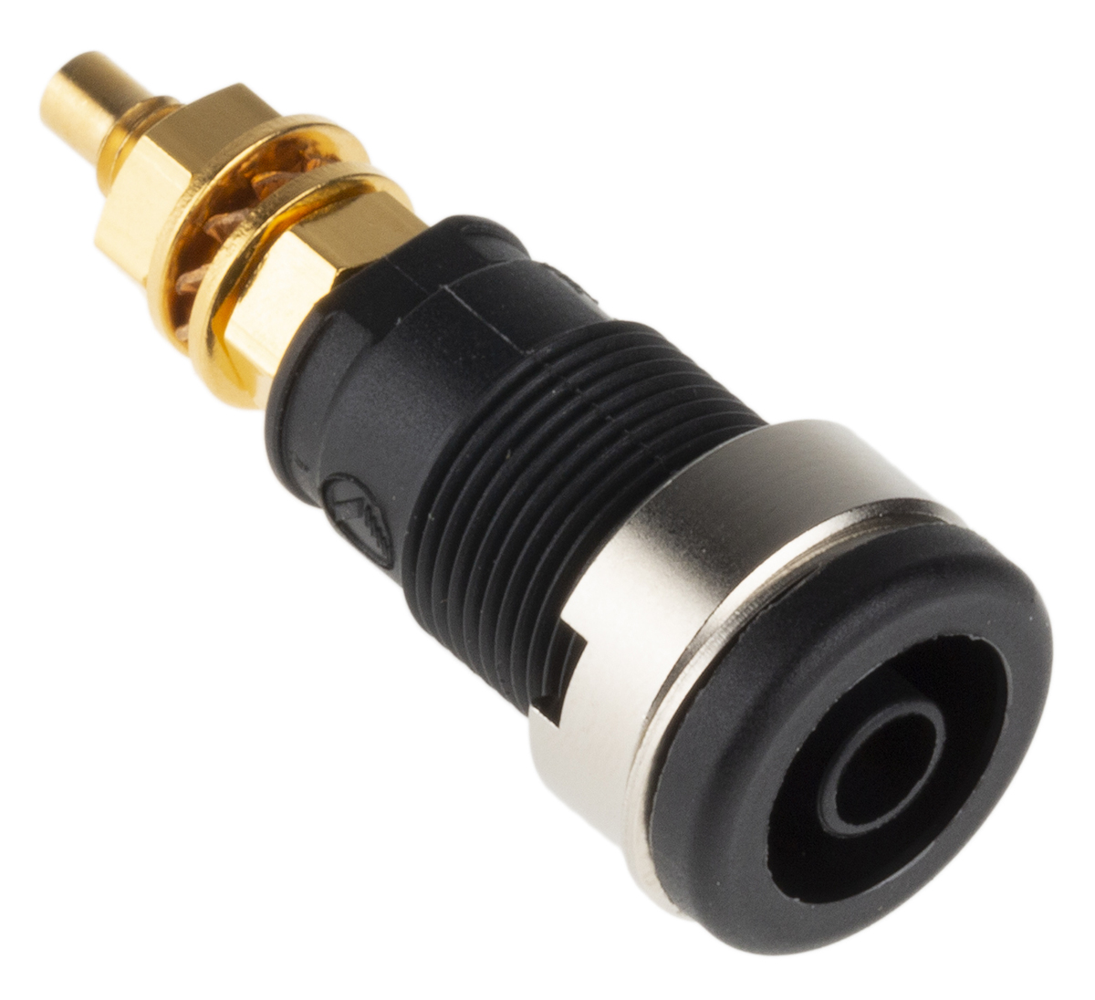 This is Black 4mm Socket Gold Plated 1kV 32A manufactured by Hirschmann Test & Measurement. The manufacturer part number is 972354100. The product has a current rating of 32a. Moreover, the product has a nominal 1000v ac/dc voltage rating. In addition, female is the available "Gender" of the product. Its accurate length is 39mm. It comes in banana socket configuration. The product is made from sturdy brass materials.