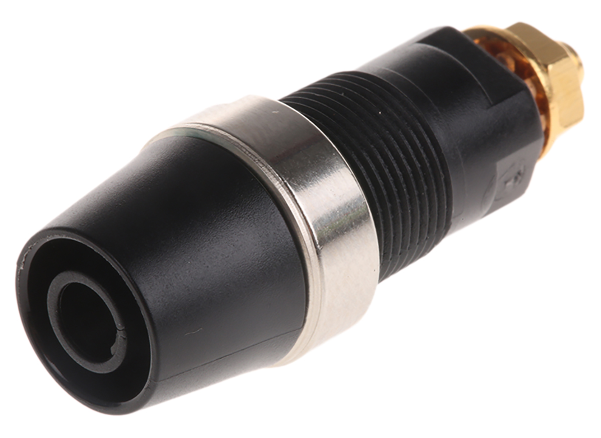 This is Black 4mm Socket Gold Plated 1kV 32A manufactured by Schutzinger. The manufacturer part number is SAB 6922 AU / SW. The product has a current rating of 32a. Moreover, the product has a nominal 1000v voltage rating. In addition, female is the available "Gender" of the product. It comes in banana socket configuration.