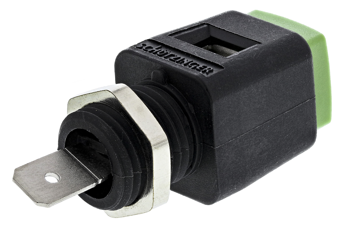 This is Green 4mm Banana Plug Nickel Plated 33 V ac 70 V dc 16A manufactured by Schutzinger. The manufacturer part number is ESD 498 / GN. The product has a current rating of 16a. Moreover, the product has a nominal 33 v ac, 70v dc voltage rating.