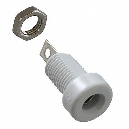This is White Banana Jack 15A 3.5kV Tin Plated manufactured by Cinch Connectors. The manufacturer part number is 108-0901-001. The product has a current rating of 15a. Moreover, the product has a nominal 3500v voltage rating. In addition, female is the available "Gender" of the product. Its accurate length is 23.83mm. It has a robust nylon insulation material. It comes in banana socket configuration. The product is made from sturdy brass materials.