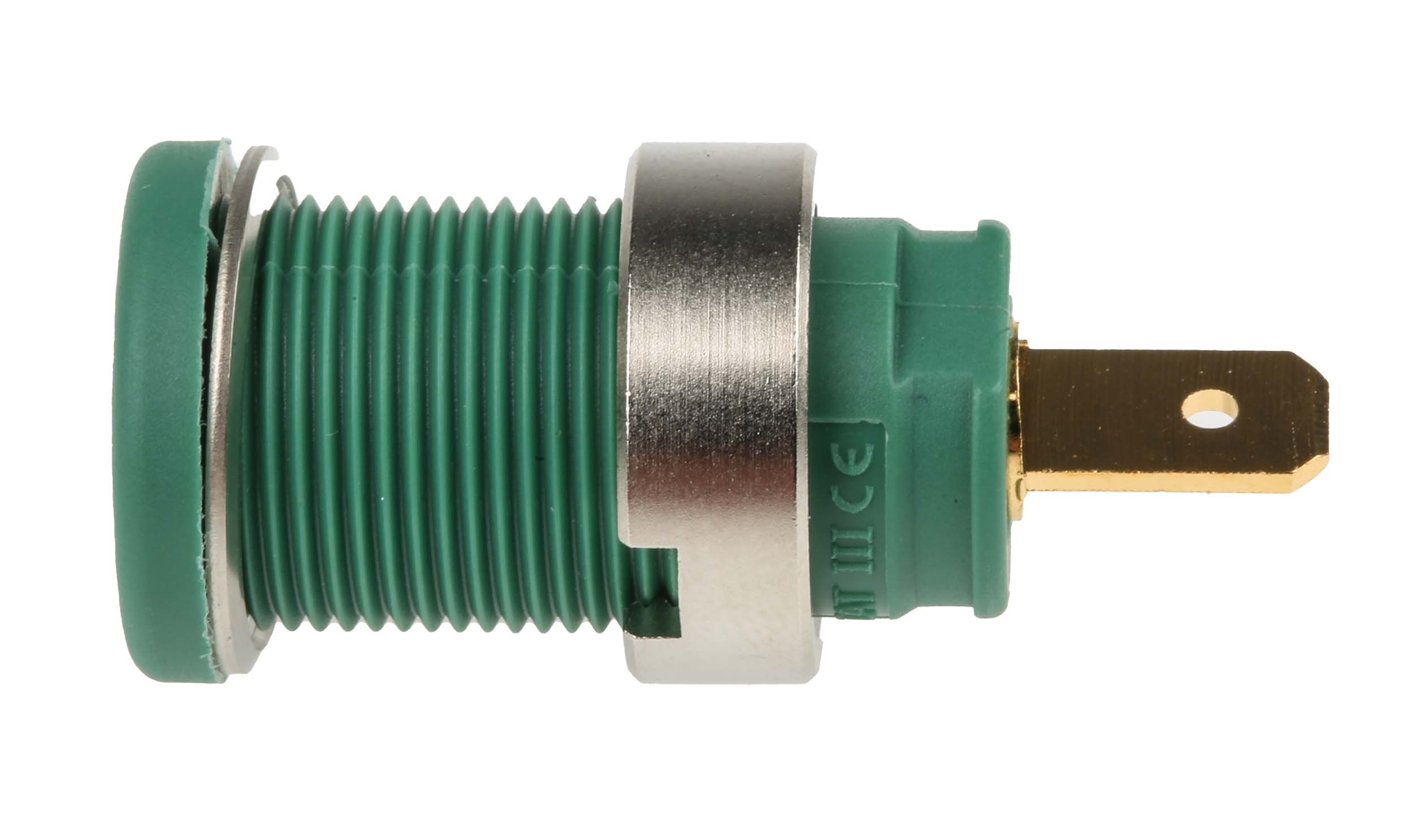 This is Green 4mm Socket Gold Plated 1000V ac/dc 25A manufactured by Hirschmann Test & Measurement. The manufacturer part number is 972355104. The product has a current rating of 25a. Moreover, the product has a nominal 1000v ac/dc voltage rating. In addition, female is the available "Gender" of the product. Its accurate length is 32mm. It has a robust polyamide insulation material. It comes in banana socket configuration. The product is made from sturdy brass materials.