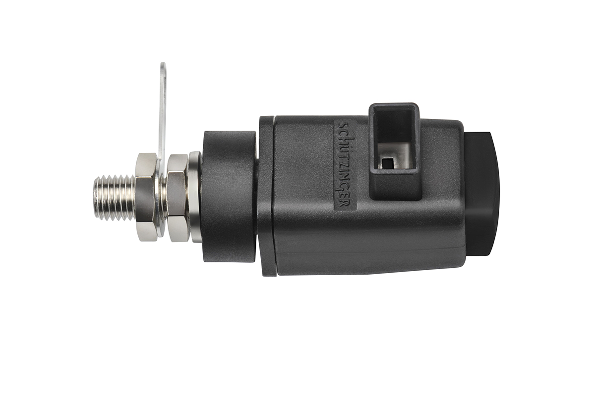This is Safety quick-release terminal 300 V CAT manufactured by Schutzinger. The manufacturer part number is SDK 800 / SW. The product has a current rating of 16a. Moreover, the product has a nominal 300v voltage rating. Its accurate length is 52.5mm. It has a robust nylon insulation material. The product is made from sturdy brass materials. It comes in test connector configuration.