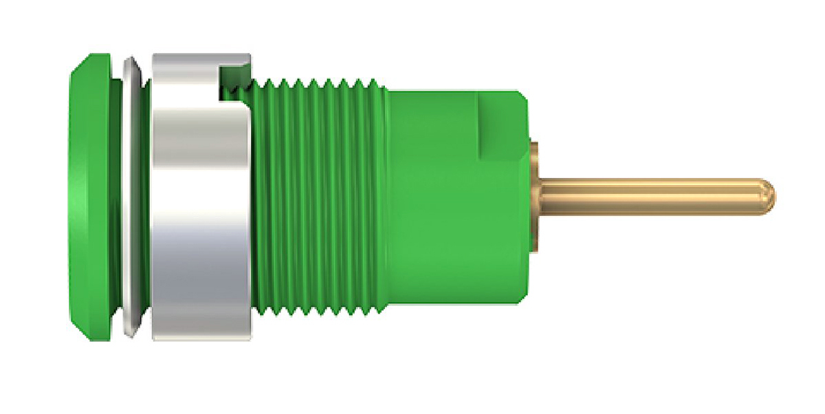 This is Multi Contact Green Female Banana Plug - Screw 1kV manufactured by Staubli. The manufacturer part number is 23.3010-25. The product has a current rating of 24a. Moreover, the product has a nominal 1000v voltage rating. In addition, female is the available "Gender" of the product. Its accurate length is 35.5mm. It has a robust polyamide insulation material. The product is made from sturdy brass materials. It comes in banana socket configuration.
