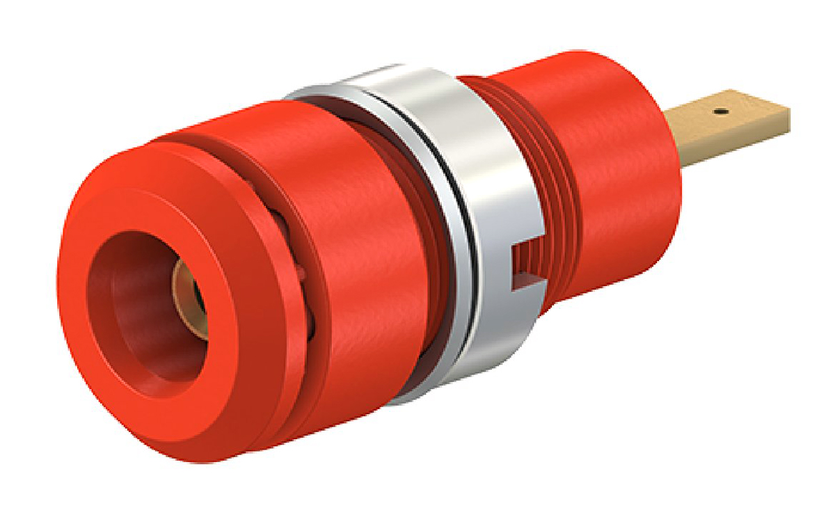 This is Multi Contact Red Female Banana Plug - Tab 600V manufactured by Staubli. The manufacturer part number is 65.9098-22. The product has a current rating of 10a. Moreover, the product has a nominal 600v voltage rating. In addition, female is the available "Gender" of the product. Its accurate length is 28mm. It has a robust polyamide insulation material. The product is made from sturdy brass materials. It comes in banana socket configuration.