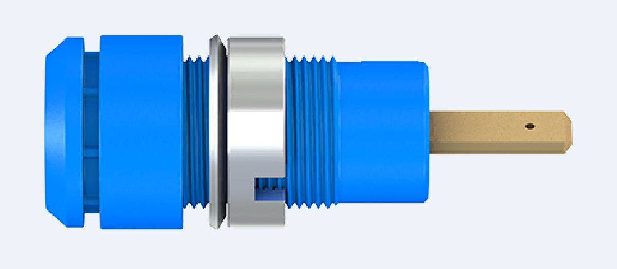 This is Multi Contact Blue Female Banana Plug - Tab 600V manufactured by Staubli. The manufacturer part number is 65.9098-23. The product has a current rating of 10a. Moreover, the product has a nominal 600v voltage rating. In addition, female is the available "Gender" of the product. Its accurate length is 28mm. It has a robust polyamide insulation material. The product is made from sturdy brass materials. It comes in banana socket configuration.