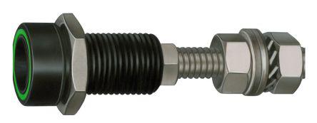 This is Multi Contact Green Female Banana Plug - Screw 600V manufactured by Staubli. The manufacturer part number is 14.0000-25. The product has a current rating of 80a. Moreover, the product has a nominal 600v voltage rating. In addition, female is the available "Gender" of the product. Its accurate length is 56.5mm. It has a robust plastic insulation material. It comes in test connector configuration. The product is made from sturdy brass materials.