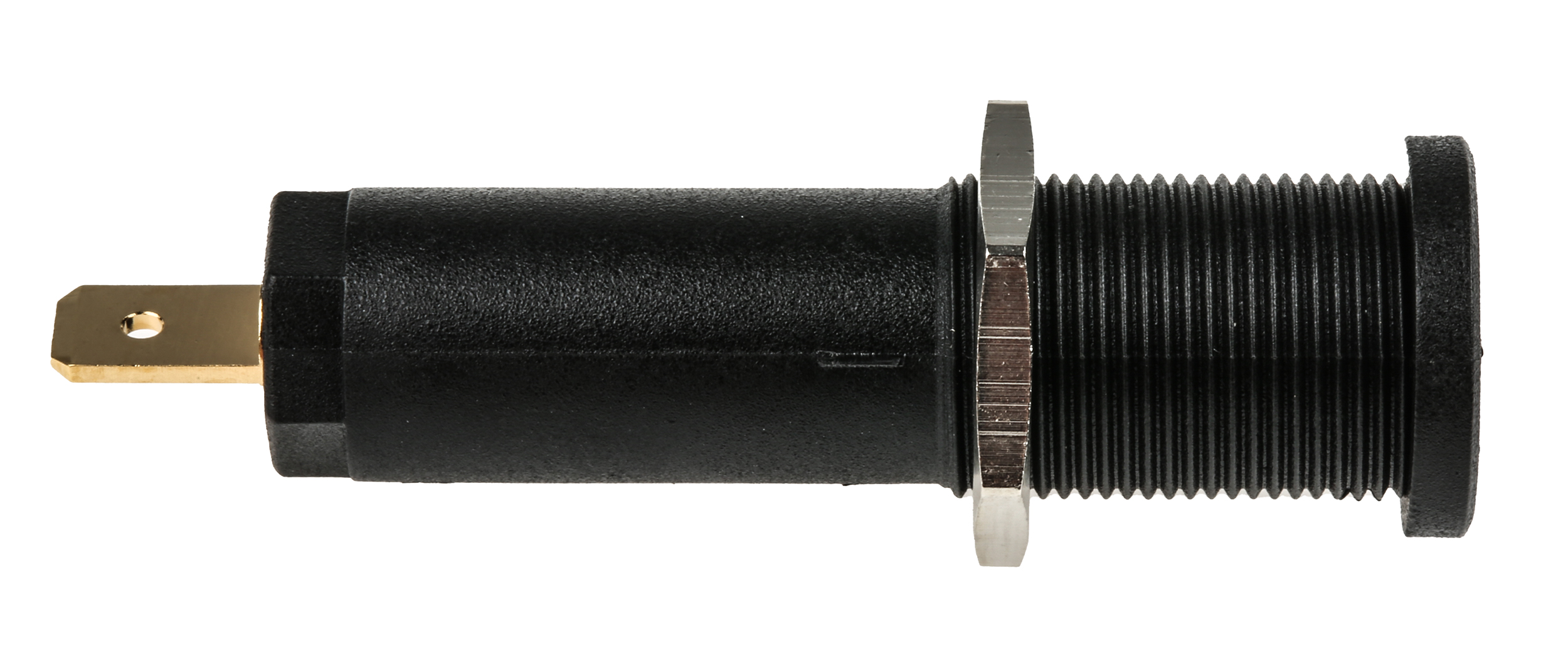 This is Multi Contact Black Female Banana Plug - Tab 1 kV 5 kV manufactured by Staubli. The manufacturer part number is 66.9427-21. The product has a current rating of 10a. Moreover, the product has a nominal 1000 v, 5000v voltage rating. In addition, female is the available "Gender" of the product. Its accurate length is 50.5mm. It comes in banana socket configuration.