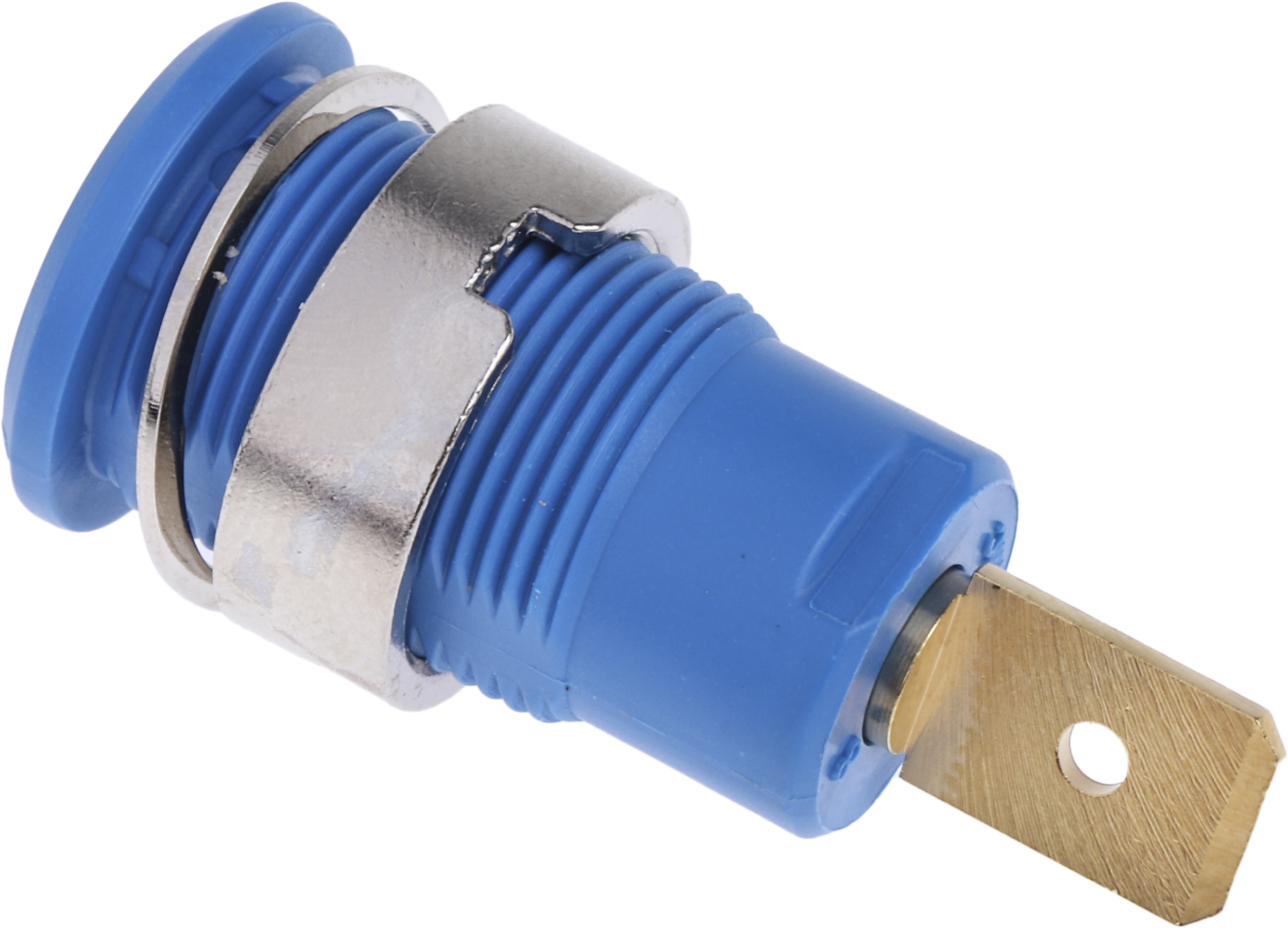 This is Multi Contact Blue Female Banana Plug - Tab 1kV manufactured by Staubli. The manufacturer part number is 23.3060-23. The product has a current rating of 32a. Moreover, the product has a nominal 1000v voltage rating. In addition, female is the available "Gender" of the product. Its accurate length is 33mm. It comes in banana socket configuration. The product is made from sturdy brass materials.