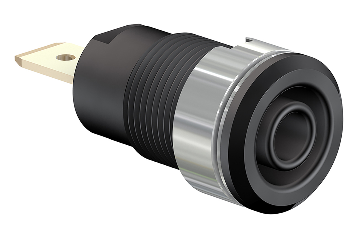 This is Multi Contact Black Female Banana Plug - Tab 1kV manufactured by Staubli. The manufacturer part number is 23.3060-21. The product has a current rating of 32a. Moreover, the product has a nominal 1000v voltage rating. In addition, female is the available "Gender" of the product. Its accurate length is 33mm. It comes in banana socket configuration. The product is made from sturdy brass materials.