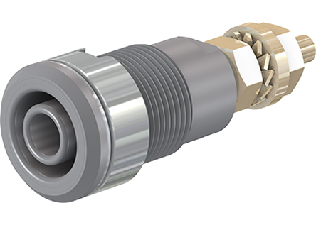 This is Multi Contact Grey Female Banana Plug - Solder 1kV manufactured by Staubli. The manufacturer part number is 23.3020-28. The product has a current rating of 32a. Moreover, the product has a nominal 1000v voltage rating. In addition, female is the available "Gender" of the product. Its accurate length is 38.5mm. It comes in banana socket configuration. The product is made from sturdy brass materials.