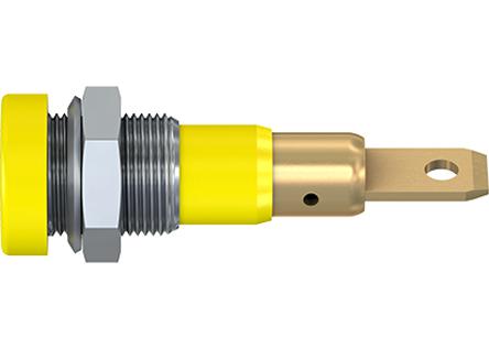 This is Multi Contact Green Yellow Female Banana Plug - Screw 30 V ac 60 V dc manufactured by Staubli. The manufacturer part number is 23.0190-20. The product has a current rating of 25a. Moreover, the product has a nominal 30 v, 60v dc voltage rating. In addition, female is the available "Gender" of the product. Its accurate length is 31.5mm. It comes in banana socket configuration. The product is made from sturdy brass materials.