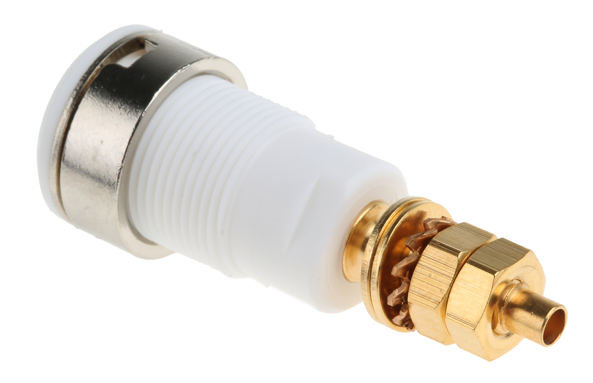 This is Multi Contact White Female Banana Plug - Solder 1kV manufactured by Staubli. The manufacturer part number is 23.3020-29. The product has a current rating of 32a. Moreover, the product has a nominal 1000v voltage rating. In addition, female is the available "Gender" of the product. Its accurate length is 38.5mm. The product is made from sturdy brass materials. It comes in banana socket configuration.