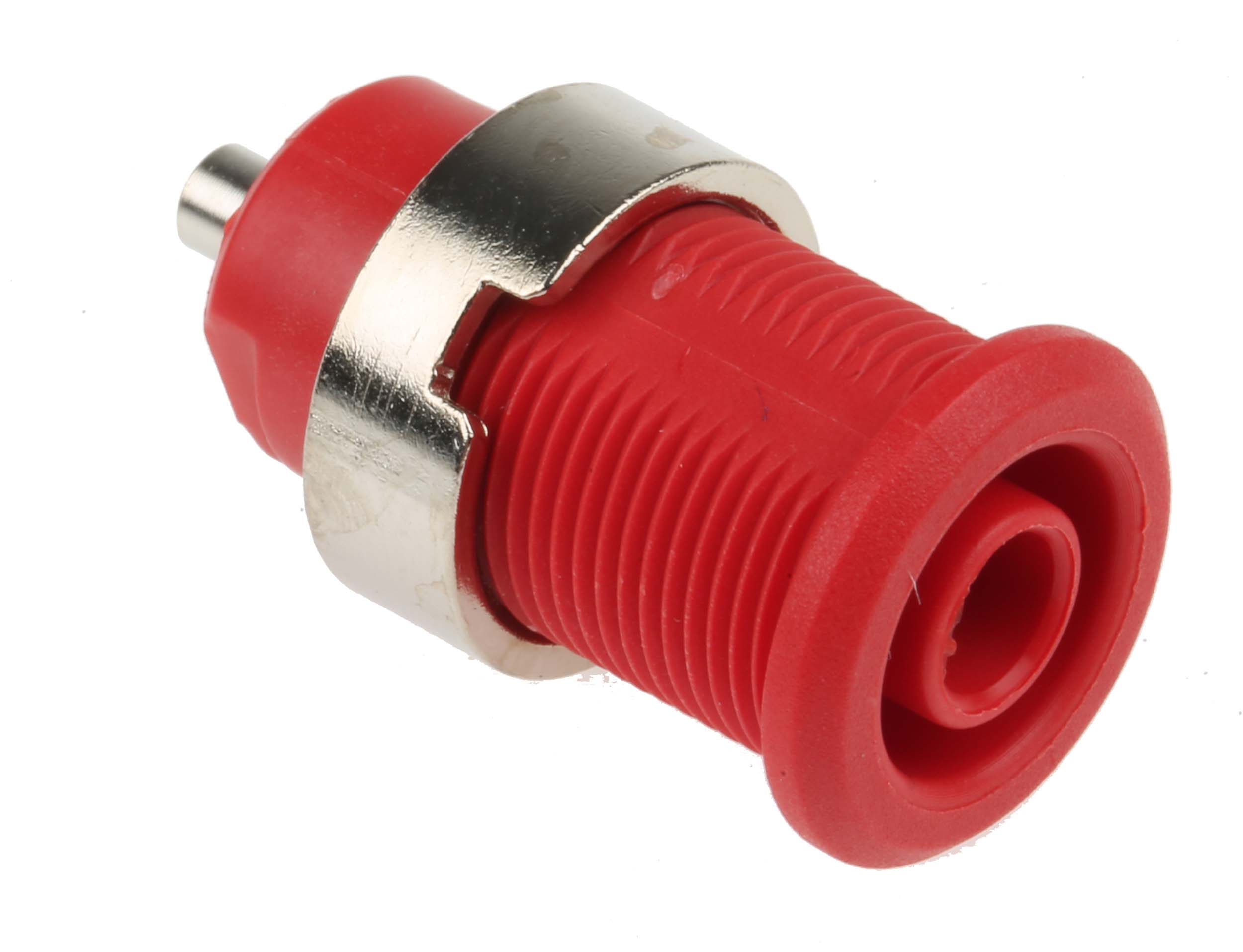 This is Multi Contact Red Female Banana Plug - Solder 1kV manufactured by Staubli. The manufacturer part number is 49.7049-22. The product has a current rating of 24a. Moreover, the product has a nominal 1000v voltage rating. In addition, female is the available "Gender" of the product. Its accurate length is 27mm. It comes in banana socket configuration. The product is made from sturdy brass materials.