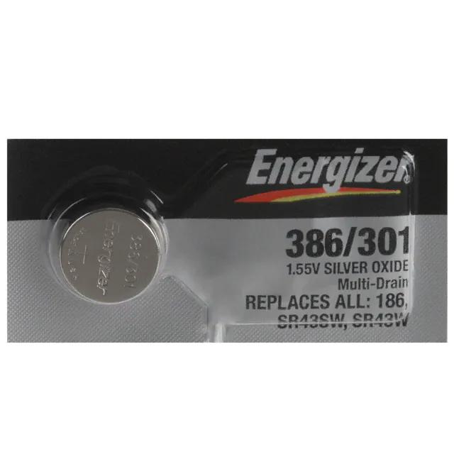 This is manufactured by Energizer Battery Company. The manufacturer part number is 386-301TZ. The module has the capacity of 127mah. It is assigned with possible HTSUS value of 8506.40.1000. The product is not applicable. Moreover, it has requires holder terminal style. The product is highly reliable with a long-lasting period of 60 months. It also exhibits voltage rating of 1.55 v. In addition, it is reach unaffected. Its warranty starts from date of manufacture. It offers storage features at 69.8°f (21°c). It is shipped in bulk. The product's diameters include 0.46" dia x 0.17" h (11.6mm x 4.2mm). The battery has a coin, 11.6mm cell size. It has a long 5 weeks standard lead time. Its typical moisture sensitivity level is 1 (unlimited). The typical product's weight is 1.71 g. The product 386/301, is a highly preferred choice for users. Features a silver oxide battery chemistry. The product is designated with the ear99 code number