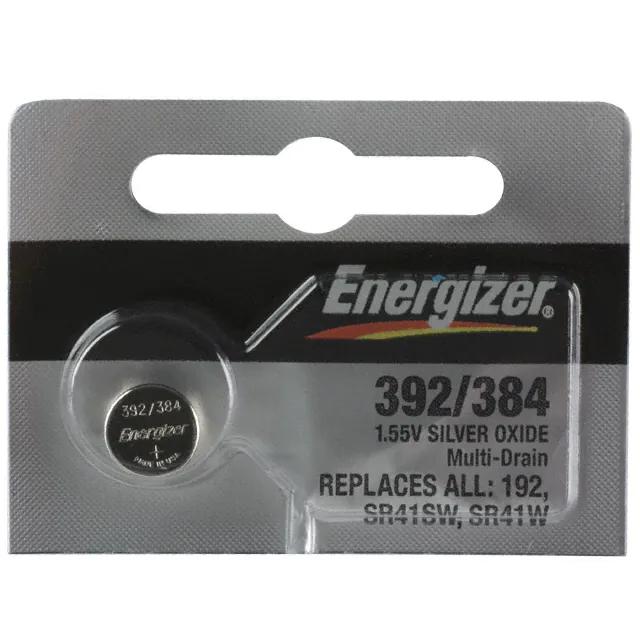 This is manufactured by Energizer Battery Company. The manufacturer part number is 392-384TZ. The module has the capacity of 44mah. It is assigned with possible HTSUS value of 8506.40.1000. The product is not applicable. Moreover, it has requires holder terminal style. The product is highly reliable with a long-lasting period of 60 months. It also exhibits voltage rating of 1.55 v. In addition, it is reach unaffected. Its warranty starts from date of manufacture. It offers storage features at 69.8°f (21°c). It is shipped in bulk. The product's diameters include 0.31" dia x 0.14" h (7.9mm x 3.6mm). The battery has a coin, 7.9mm cell size. It has a long 5 weeks standard lead time. Its typical moisture sensitivity level is 1 (unlimited). The typical product's weight is 0.57 g. The product 392/384, is a highly preferred choice for users. Features a silver oxide battery chemistry. The product is designated with the ear99 code number