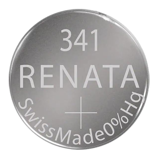 This is manufactured by Renata Batteries. The manufacturer part number is 341. It also exhibits voltage rating of 1.55 v. It is assigned with possible HTSUS value of 8506.40.1000. It is shipped in strip. The product is rohs non-compliant. Moreover, it has requires holder terminal style. In addition, it is vendor undefined. Features a silver oxide battery chemistry. The product is designated with the ear99 code number