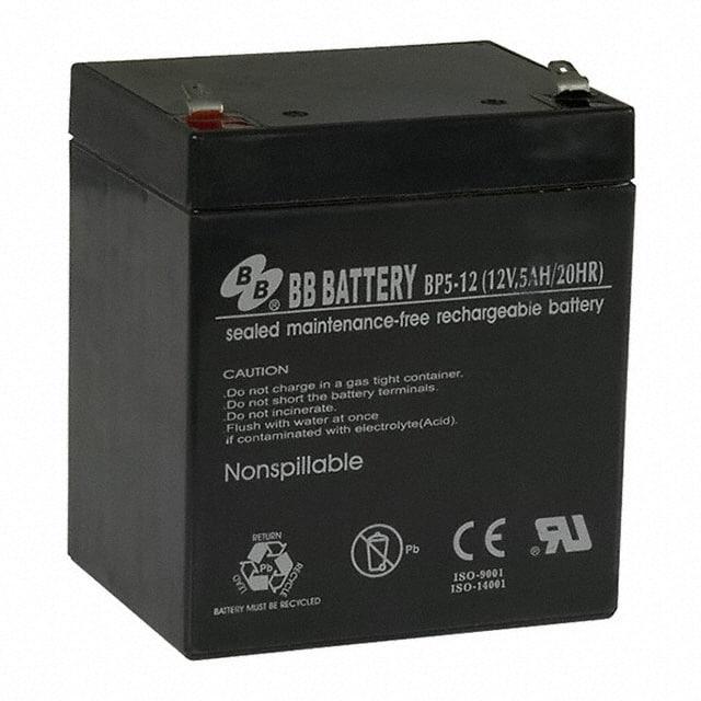 This is manufactured by B B Battery. The manufacturer part number is BP5-12-T1. The module has the capacity of 5ah. It is assigned with possible HTSUS value of 8507.20.8041. The product is not applicable. Moreover, it has spade, .187" (4.7mm) terminal style. Its typical moisture sensitivity level is not applicable. The product is highly reliable with a long-lasting period of 12 months. It also exhibits voltage rating of 12 v. It is shipped in bulk. The product's diameters include 3.60" l x 2.81" w x 4.07" h (91.5mm x 71.5mm x 103.5mm). It has a long 20 weeks standard lead time. The typical product's weight is 1800 g. The product bp, is a highly preferred choice for users. Features a sealed lead acid (sla, vrla) battery chemistry. The product is designated with the ear99 code number