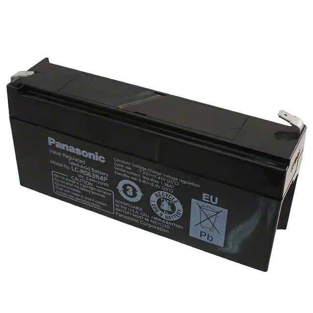 This is manufactured by Panasonic - BSG. The manufacturer part number is LC-R063R4P. The module has the capacity of 3.4ah. It is assigned with possible HTSUS value of 8507.20.8031. The product is not applicable. Moreover, it has spade, .187" (4.7mm) terminal style. Its typical moisture sensitivity level is 1 (unlimited). The product is highly reliable with a long-lasting period of 12 months. It also exhibits voltage rating of 6 v. It is shipped in bulk. The product's diameters include 5.33" l x 1.38" w x 2.40" h (135.5mm x 35.0mm x 61.0mm). The typical product's weight is 635 g. The product lc, is a highly preferred choice for users. Features a sealed lead acid (sla, vrla) battery chemistry. Moreover, it corresponds to lc-r063, a base product number of the product. The product is designated with the ear99 code number