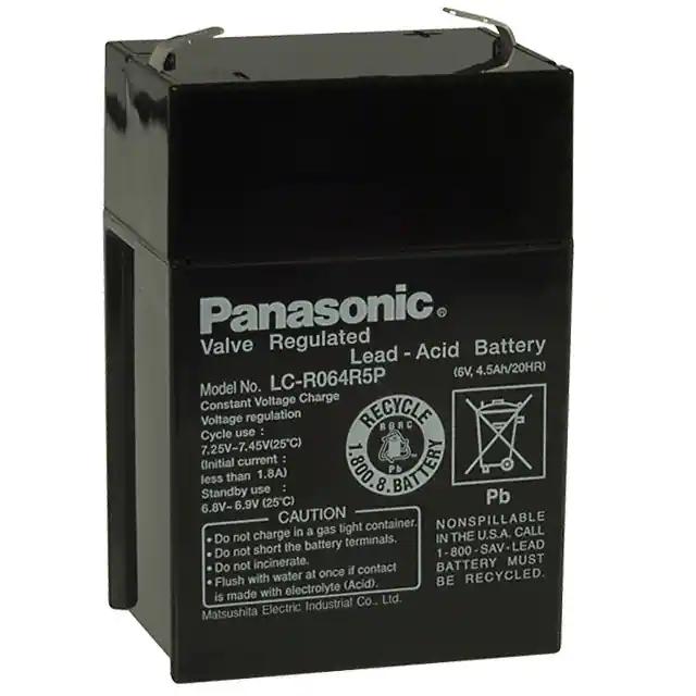 This is manufactured by Panasonic - BSG. The manufacturer part number is LC-R064R5P. The module has the capacity of 4.5ah. It is assigned with possible HTSUS value of 8507.20.8031. The product is not applicable. Moreover, it has spade, .187" (4.7mm) terminal style. Its typical moisture sensitivity level is not applicable. The product is highly reliable with a long-lasting period of 12 months. It also exhibits voltage rating of 6 v. It is shipped in bulk. The product's diameters include 2.80" l x 1.93" w x 4.06" h (71.0mm x 49.0mm x 103.2mm). The typical product's weight is 725.7 g. The product lc, is a highly preferred choice for users. Features a sealed lead acid (sla, vrla) battery chemistry. Moreover, it corresponds to lc-r064, a base product number of the product. The product is designated with the ear99 code number