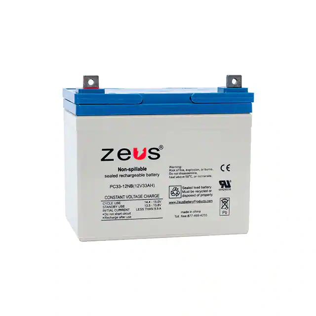 This is manufactured by ZEUS Battery Products. The manufacturer part number is PC33-12NB. The module has the capacity of 33ah. It also exhibits voltage rating of 12 v. The product is rohs compliant. Moreover, it has nut and bolt, m6 terminal style. Its typical moisture sensitivity level is not applicable. The product is highly reliable with a long-lasting period of 12 months. It is assigned with possible HTSUS value of 8507.20.8041. It is shipped in bulk. The product's diameters include 7.72" l x 5.16" w x 6.34" h (196.0mm x 131.0mm x 161.0mm). It has a long 12 weeks standard lead time. Features a sealed lead acid (sla, vrla) battery chemistry. The product is designated with the ear99 code number