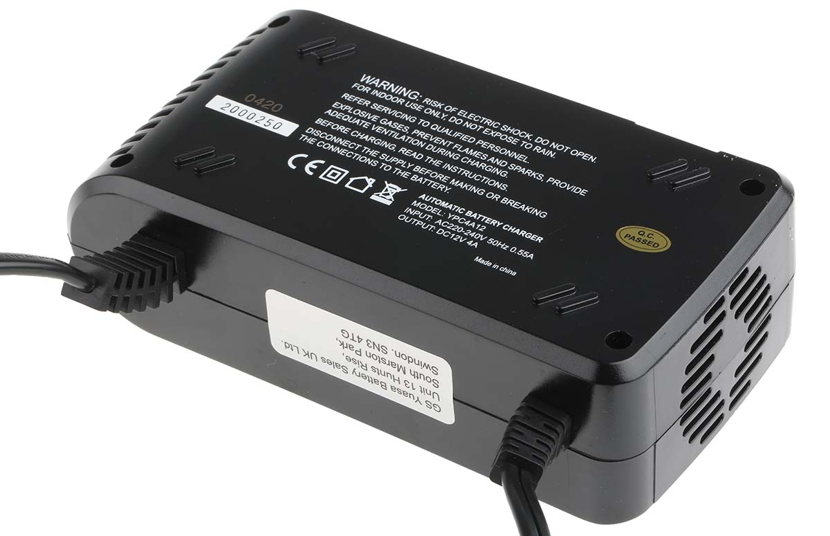 This is Variable Voltage 4A Battery Charger UK Plug manufactured by Yuasa. The manufacturer part number is YPC4A12. The given dimensions of the product include 164 x 85 x 55mm. The typical product's weight is 620g.