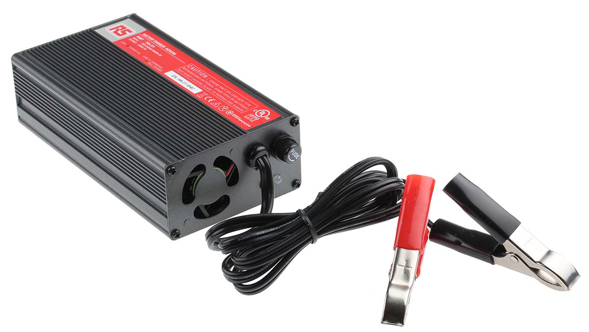 This is 24V 4A Lead Acid Battery Charger Schuko Plug UK Plug manufactured by RS Pro. The manufacturer part number is 549-271. The given dimensions of the product include 186 x 88 x 47.5mm. The typical product's weight is 800g.