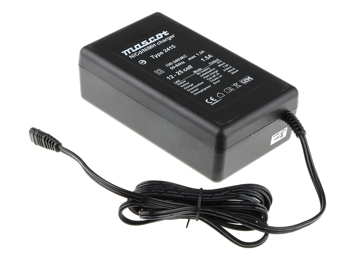 This is 12 → 25 Cell 1.5A 65W Battery Pack Charger for NiCd NiMH batteries manufactured by Mascot. The manufacturer part number is 2415000056. The given dimensions of the product include 135 x 80 x 44mm. The typical product's weight is 350g.