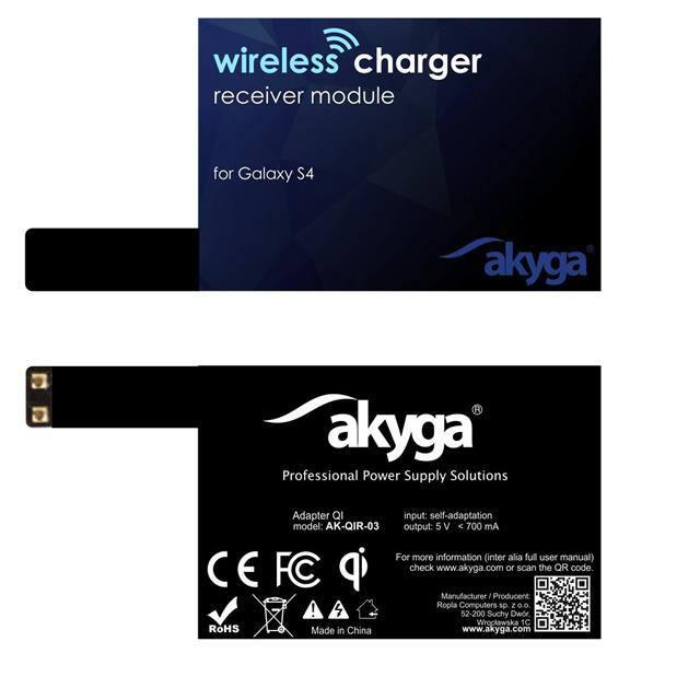 This is manufactured by AKYGA. The manufacturer part number is AK-QIR-03. The product is rohs non-compliant. The product has 5°c ~ 50°c operating temperature range. It is approved by ce. The product is available in desktop configuration. It comes in inductive charger configuration. In addition, it is reach affected. It is shipped in bulk. The product's diameters include 2.36" l x 1.65" w x 0.04" h (60.00mm x 42.00mm x 1.00mm). Its typical moisture sensitivity level is vendor undefined. It is comprised of 1 cells.