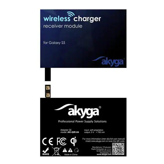 This is manufactured by AKYGA. The manufacturer part number is AK-QIR-04. The product is rohs non-compliant. The product has 5°c ~ 50°c operating temperature range. It is approved by ce. The product is available in desktop configuration. It comes in inductive charger configuration. In addition, it is reach affected. It is shipped in bulk. The product's diameters include 2.44" l x 2.13" w x 0.04" h (62.00mm x 54.00mm x 1.00mm). Its typical moisture sensitivity level is vendor undefined.