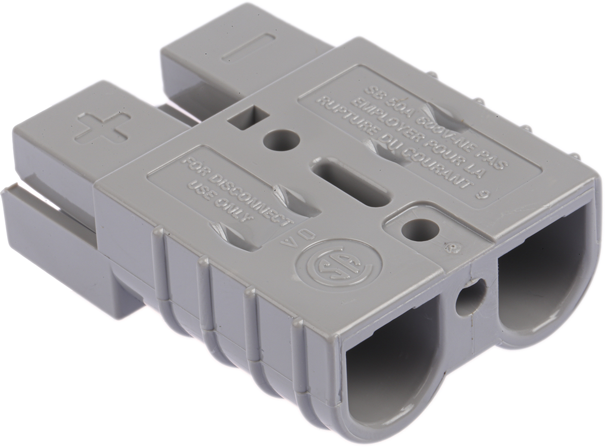 This is Power Connector Housing; Gray; SB 50 connector; SB 50 manufactured by Anderson Power Products. The manufacturer part number is 6319G1. The product contains 2 contacts. The product has a current rating of 50a. The product is available in cable mount configuration. Moreover, the product has a nominal 600 v voltage rating. In addition, male is the available "Gender" of the product. The product sb50, is a highly preferred choice for users. The product is made from sturdy copper alloy materials.