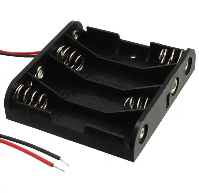 This is manufactured by Bud Industries. The manufacturer part number is HH-3633. Additionally, the product is designed with holder (open) Style. It is assigned with possible HTSUS value of 8536.69.8000. The product is rohs3 compliant. Moreover, it has wire leads - 6" (152.4mm) terminal style. In addition, it is reach unaffected. It is shipped in bag. Its typical moisture sensitivity level is not applicable. The battery has a aa cell size. It has a long 11 weeks standard lead time. The product is available in chassis mount configuration. It is comprised of 4 cells. The product is designated with the ear99 code number