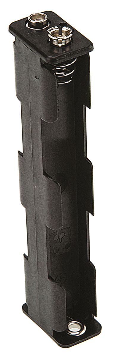 This is Battery Holder for 4 Coil Spring Contact manufactured by RS Pro. The manufacturer part number is 594-432. The given dimensions of the product include 115 x 27 x 17mm. It is comprised of 4 cells. The product's body is nicely designed from pp materials. It comes in battery holder configuration.