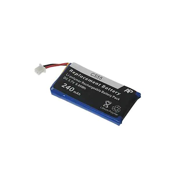 This is manufactured by Artisan Power. The manufacturer part number is RB-CS55-L. The module has the capacity of 240mah. It also exhibits voltage rating of 3.7 v. The product is rohs compliant. It is shipped in retail package. Features a lithium polymer battery chemistry.
