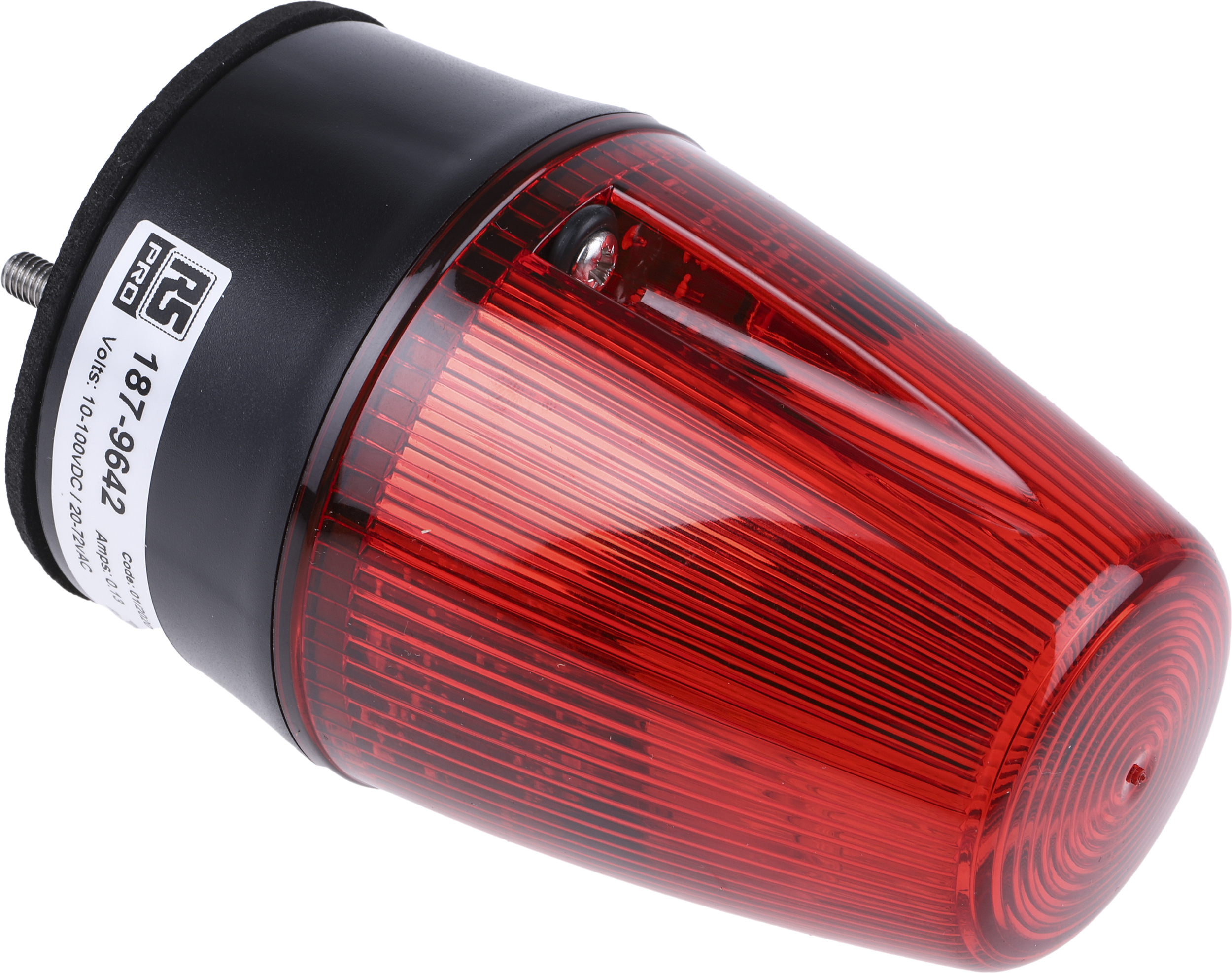 This is Xenon Flashing Beacon Red Surface Mount Wall Mount 10 → 100 V dc 20 → 72 V ac manufactured by RS PRO. The manufacturer part number is 187-9642. In addition, the height is 107mm.