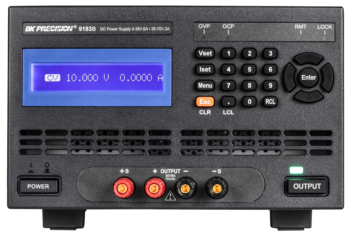 This is Digital Bench Power Supply 1 Output 0 → 35 V 0 → 70 V manufactured by BK Precision. The manufacturer part number is BK9183B. Features a versatile binding post terminal output connector. Additionally, the product is supplied with 1 outputs. Input connector of iec 320. It comes in digital configuration.