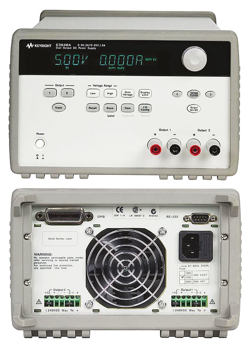 This is Bench Power Supply With RS Calibration 2 Output 0 → 20 V 0 → 8 V manufactured by Keysight Technologies. The manufacturer part number is E3648A. Features a versatile binding post terminal output connector. Additionally, the product is supplied with 2 outputs. The product e364xa, is a highly preferred choice for users. Input connector of iec 320. It comes in digital configuration.