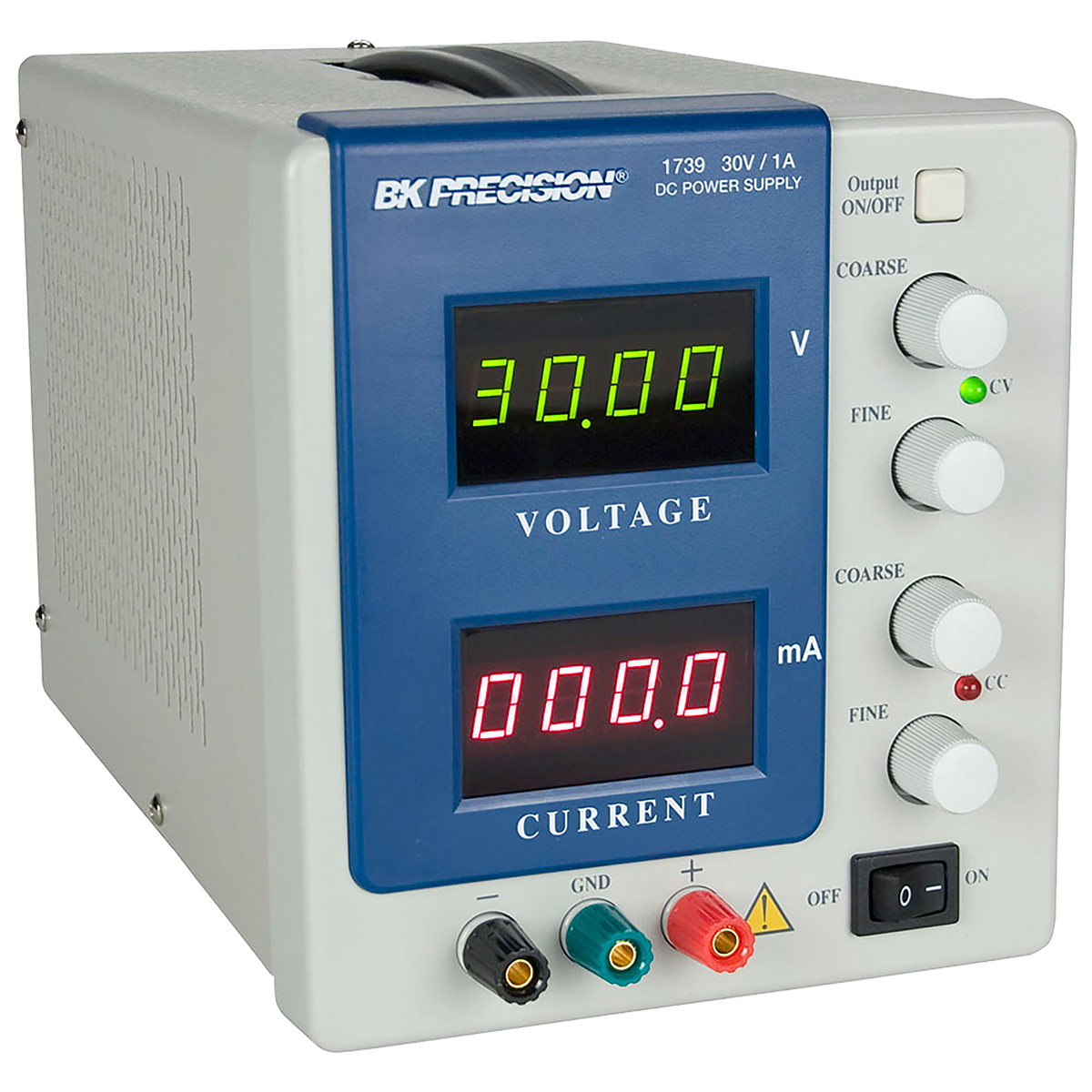 This is Digital Bench Power Supply 1 Output 0 → 30V 0 → 999.9mA ≤70W manufactured by BK Precision. The manufacturer part number is BK1739. Features a versatile binding post terminal output connector. Additionally, the product is supplied with 1 outputs. Input connector of iec 320. It comes in digital configuration.
