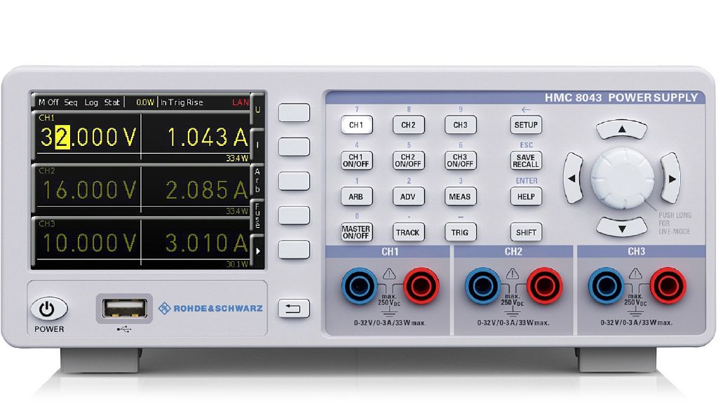 This is Bench Power Supply Hameg 3 Output Digital 33W 0 → 32V 3A manufactured by Rohde & Schwarz. The manufacturer part number is HMC8043-G. Additionally, the product is supplied with 3 outputs. Input connector of wago male connector. Features a versatile 4 mm safety socket output connector. It comes in digital configuration.