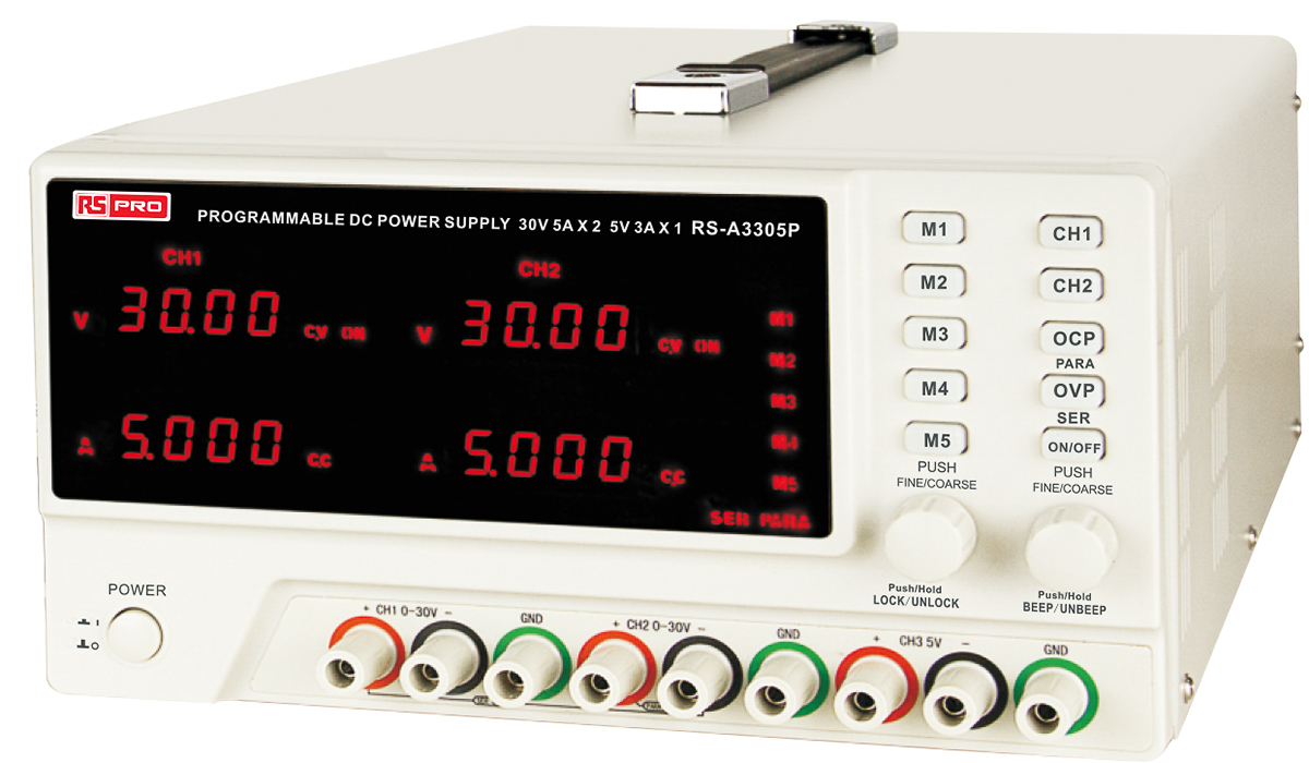 This is Bench Power Supply With RS Calibration manufactured by RS PRO. The manufacturer part number is 180-8853. Additionally, the product is supplied with 3 outputs. Input connector of iec 320-c14. Features a versatile rs232, usb output connector. It comes in digital configuration.