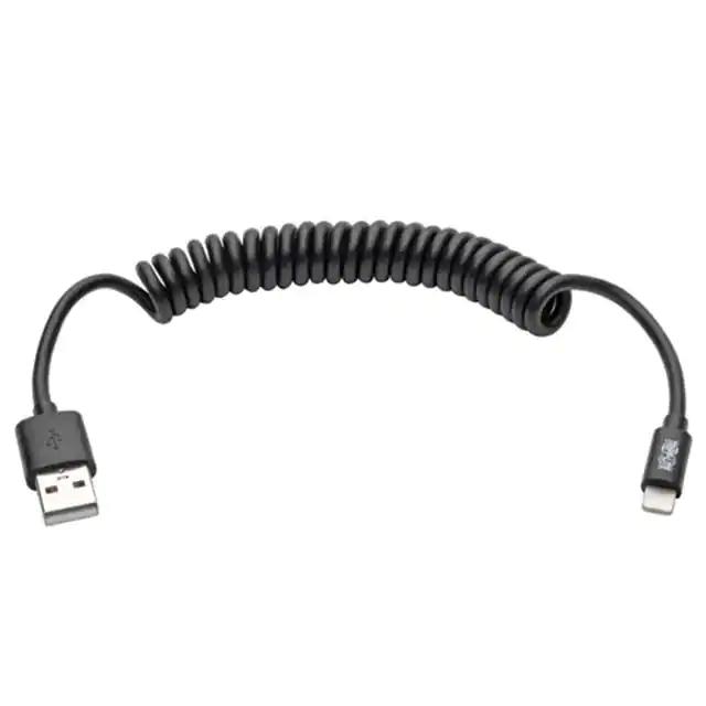 This is manufactured by Tripp Lite. The manufacturer part number is M100-004COIL-BK. The product is rohs compliant. Furthermore, the product is shielded with unshielded. It is assigned with possible HTSUS value of 8544.42.1000. It is shipped in bulk. It has a classic black colour. It is a typical round coiled cable. Its accurate length is 4.00' (1.22m). usb a male plug to i5 lightning connector Connector type offer robust functionality. The product's typical Applications include uses in sync and charge. Its typical moisture sensitivity level is not applicable. It has a long 2 weeks standard lead time. The product is designated with the ear99 code number