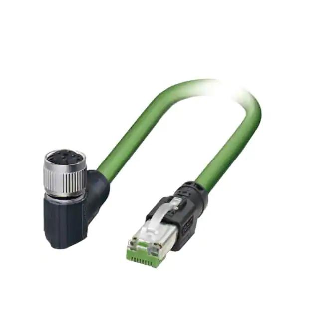 This is manufactured by Phoenix Contact. The manufacturer part number is 1408613. The product is rohs3 compliant. Furthermore, the product is shielded with shielded. It is assigned with possible HTSUS value of 8544.42.2000. It is shipped in bulk. It has a classic green colour. It is a typical round cable. Its accurate length is configurable. In addition, it is reach unaffected. circular 04 pos female, right angle to rj45, 8p4c Connector type offer robust functionality. The product's typical Applications include uses in cat5, industrial environments. Its typical moisture sensitivity level is 1 (unlimited). The product is designated with the ear99 code number